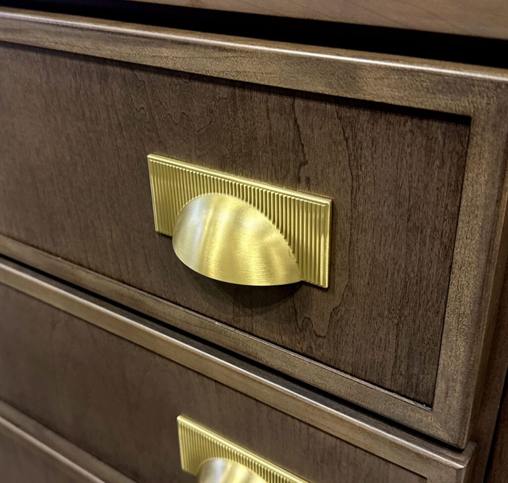 Mid-tone and deeper wood finishes were popular, bringing in warmth and visual depth. Overall, cabinetry was expressed more like bespoke furniture vs functional millwork, with soft curves, mixed materials and metallic insets.