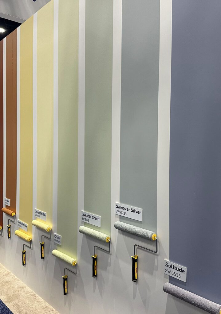 // Colors of the Year were grounded and earthy from warm neutrals like Cloud Dancer and Universal Khaki to the smoky green of Hidden Gem and the deep espresso of Silhouette – deep cozy reds like Warm Mahogany were also featured